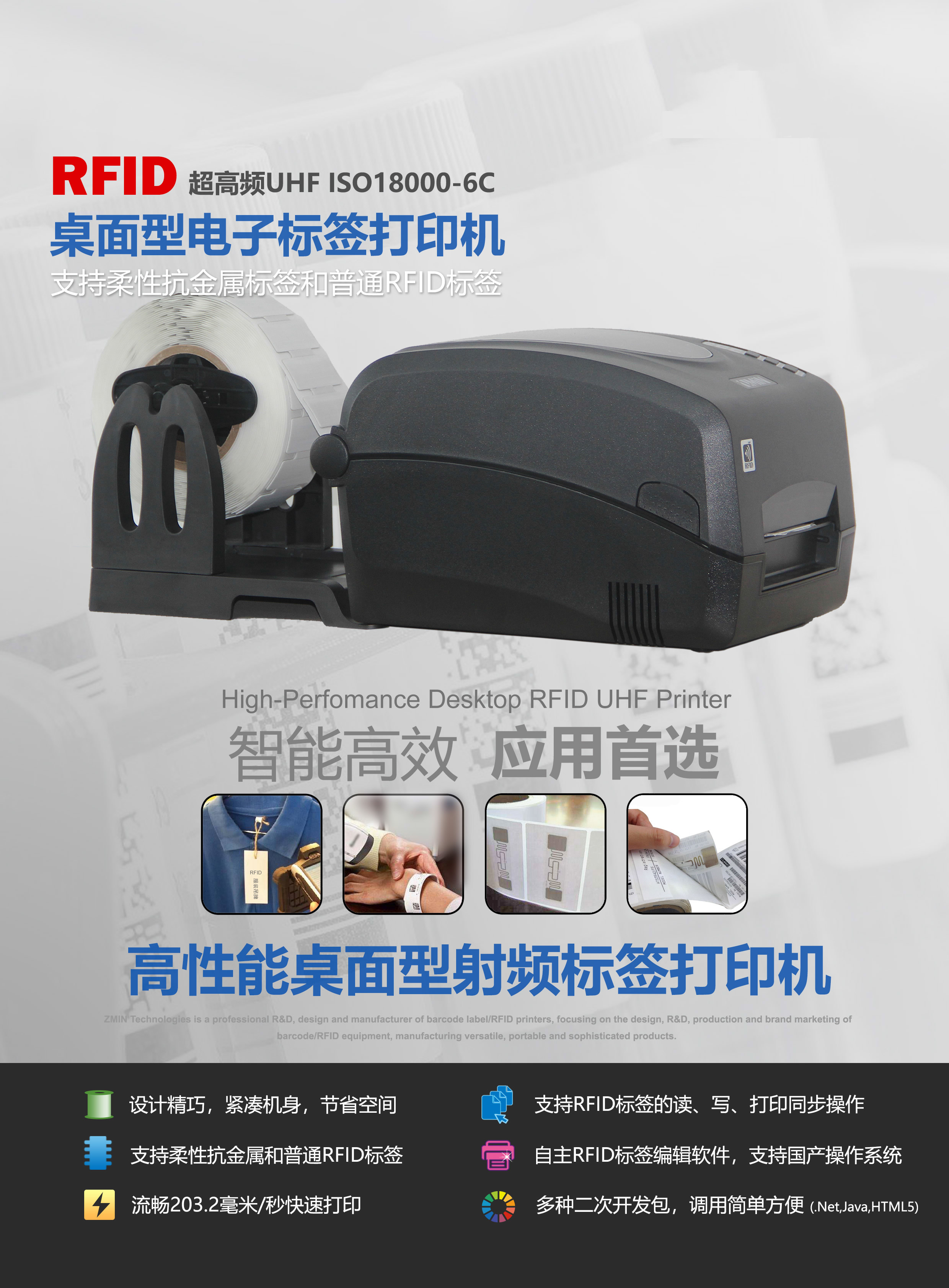 4、支持厚度1.5mm以内的柔性抗金属标签和普通RFID标签,也支持非RFID标签的打印;